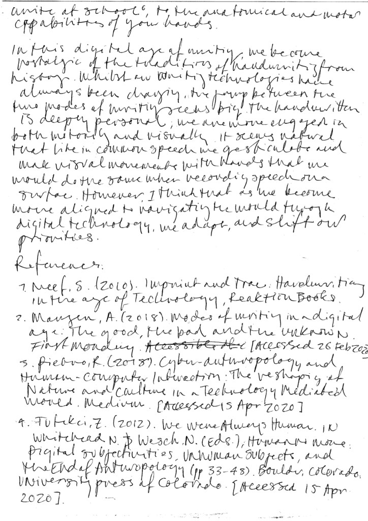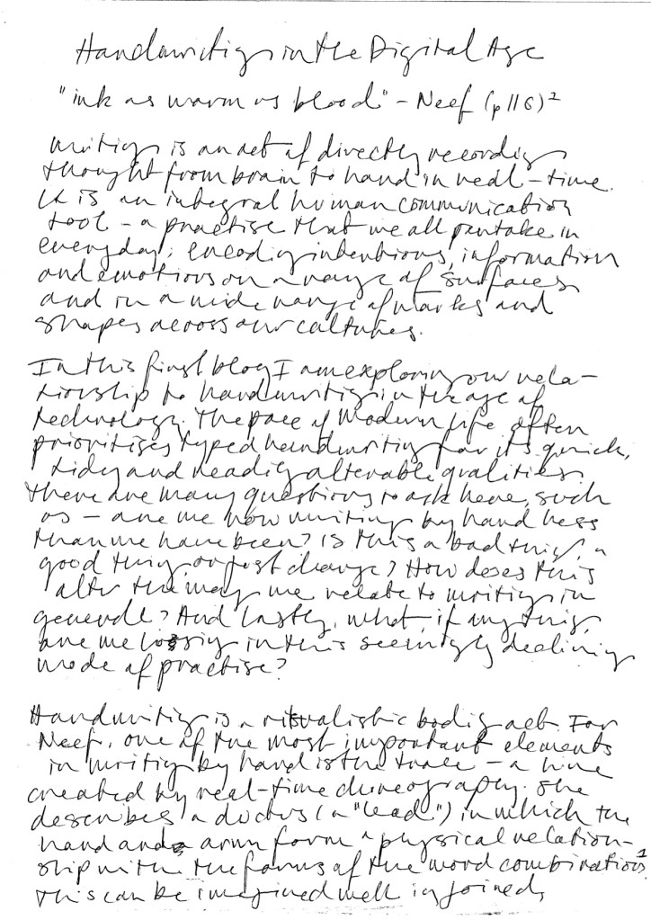 This is a handwritten version of the Handwriting in the Digital Age, find the original (legible) here. I thought that it might serve as an interesting extra to underline points raised within the original post – does the content of the post strike you differently handwritten?